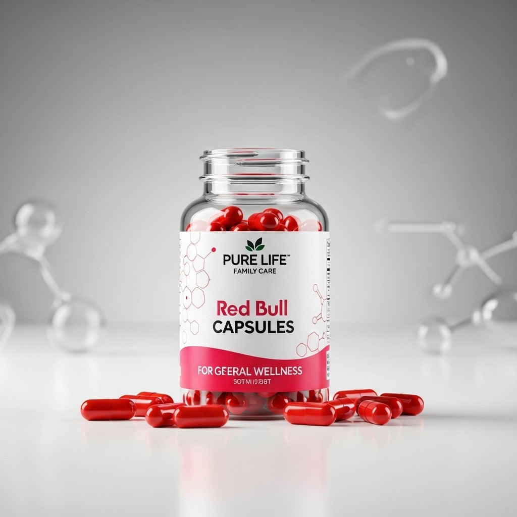 Unlock your full potential every day with Pure Life Red Bull Capsules. Packed with powerful herbs to enhance energy, stamina, and mental focus, these capsules help you stay active and alert.